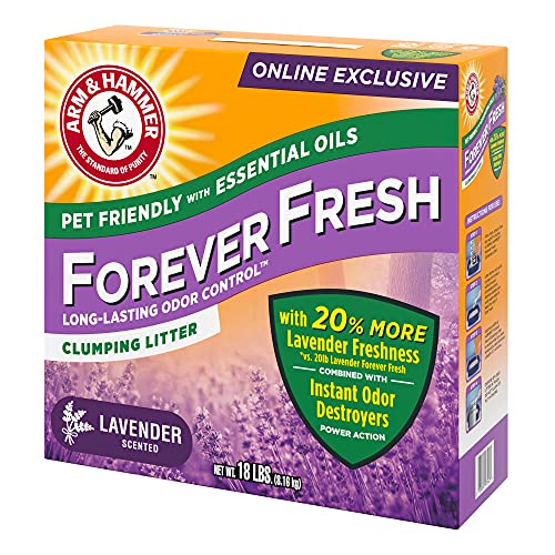 - ONLINE EXCLUSIVE! Fill your cat litter box with the refreshing scent of fresh lavender fields with ARM & HAMMER Forever Fresh Lavender Clumping Cat Litter! This effective, odor-controlling 18 lb. size cat litter is only available online—ready to be shipped directly to you anytime you need it. Its convenient, new 18 lb. size also delivers 20% more lavender freshness than our 20 lb. size!
