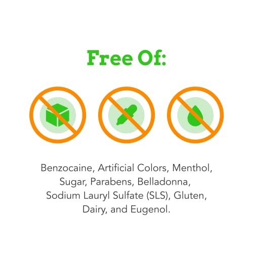 - DRUG-FREE: Free from benzocaine, belladonna, eugenol, sugar, menthol, sodium lauryl sulfate (SLS), sulfate, dairy, and artificial colors, dyes, and sweeteners